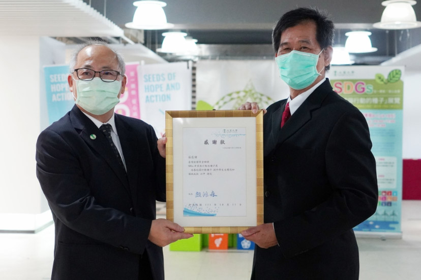 原聲原社熱情的舞蹈表演為展覽活動揭開序幕,施英隆副校長代表學校致贈感謝狀,感謝台灣創價學會共同推廣SDGs。施英隆副校長表示,大葉大學獲評為全國私校第一的綠色大學,以永續的綠色大學為辦學願景,今年更是榮獲教育部111年度永續循環校園示範計畫補助,學校也集結跨領域師資團隊,成立「產業淨零碳排輔導團」,協助產業因應政府「2050淨零排放」目標,邁向永續願景。台灣創價學會一直致力於和平、文化、教育的推廣,今年特別響應聯合國永續發展目標SDGs,舉辦「SDGs × 希望與行動的種子」展覽,把永續的種子散播到校園,大葉大學也培訓了30位大學生擔任此次的導覽志工,帶領更多人一起來了解SDGs。