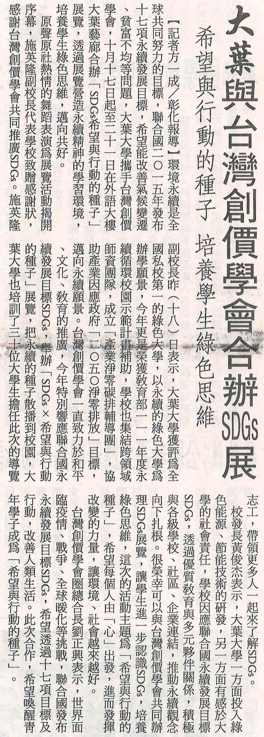 大葉與台灣創價學會合辦SDGs展