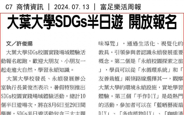 大葉大學SDGs半日遊 開放報名