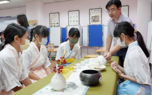 鹿鳴國中參訪大葉大學SDGs校園實踐場域,透過茶渣抗菌乾洗手液、茶藝、中藥防蚊香包等體驗活動,了解友善栽植與生產,加深對永續觀念的認識。