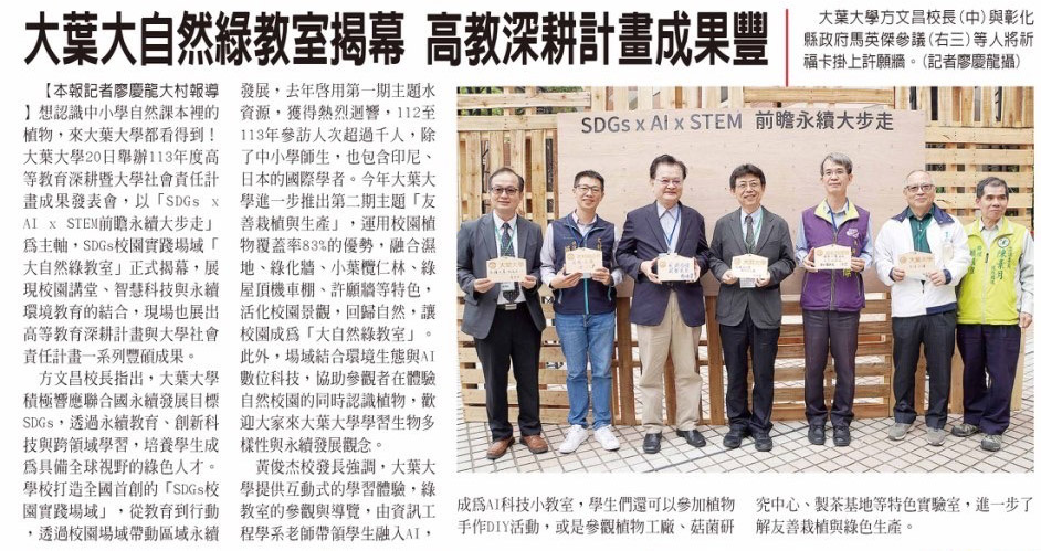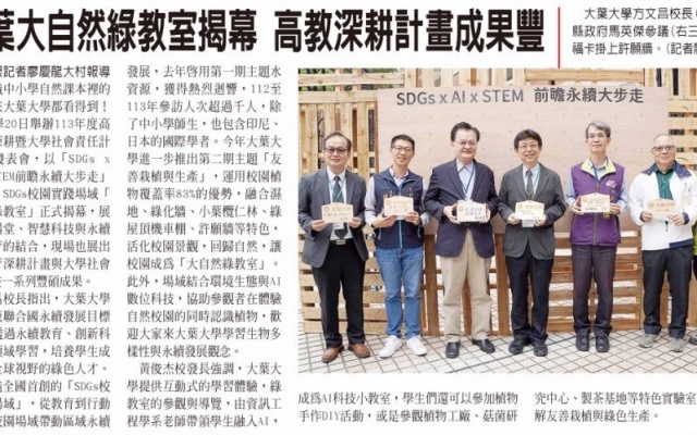 大葉大自然綠教室揭幕 高教深耕計畫成果豐