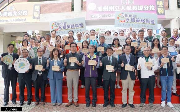 全球正面臨氣候變遷挑戰,暖化、暴雨、颱風同時影響到糧食供應、水資源與生物多樣性,彰化縣政府參議馬英傑、大村鄉公所社政課課長賴弘祥、大學社會責任推動中心計畫總主持人蘇玉龍、大葉大學校長方文昌,以及多所中小學校長將祈福卡掛上許願牆,象徵對永續實踐的責任與使命,同時對社會與環境送上祝福,期盼大家共同努力,創造一個綠色永續發展的未來。