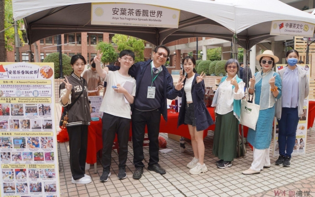 參與者在祈福牆前留影,活動現場熱鬧非凡,國際學生帶來史瓦帝尼、越南及馬來西亞的特色文化展覽,讓來賓感受多元文化魅力;草地音樂節更吸引大批師生與居民參與,共同在輕鬆氛圍中認識永續 教育的意義。