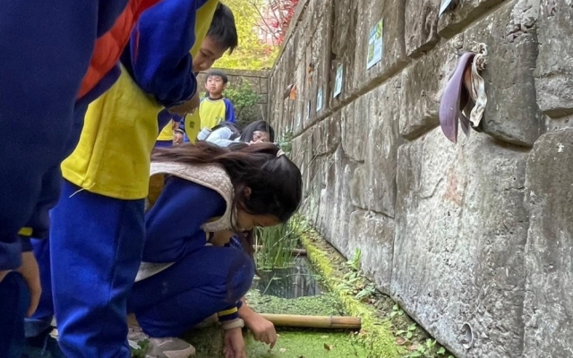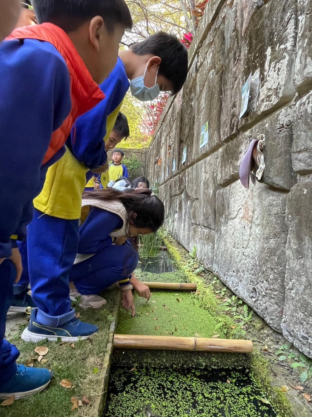 長安國小師生體驗「葉子書籤」、「中藥防蚊包DIY」,並參觀大自然教室,認識友善栽植觀念與多樣性的水生植物。