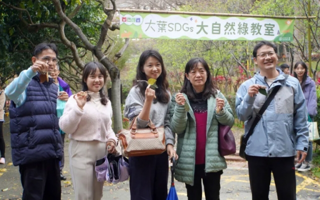大村國小與大葉大學合作,將教師研習活動移師到大葉大學,大葉大學結合聯合國永續發展目標 SDGs 議題,帶領教師們巡禮大自然綠教室,認識友善栽植體驗葉子書籤與種子名牌手作,探索環境教育新思維。