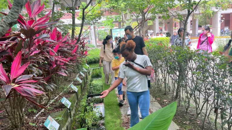 陳郁文校發長表示,去年啟用的「友善栽植與生產」SDGs 校園實踐場域,以環境友善的種植方式栽培原料,再透過初級加工與功能性分析,應用於食品、保健、美妝甚至醫藥領域,同時將萃取後的廢棄物回收為有機肥料,實現完整的循環經濟與淨零碳排。學校也設計了咖啡渣再利用、葉脈書籤等 DIY 體驗活動,讓學員製作天然驅蚊蚊香或是撿拾落葉製作吊飾,推廣綠色生活與環保創新,呼應SDG12「負責任的消費與生產」的核心精神。