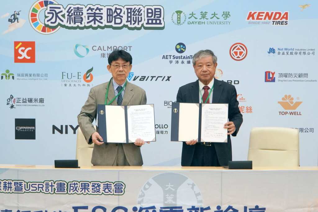 成果展當天也舉辦「永續策略聯盟簽署儀式」,大葉大學近年推動永續教育向下扎根,已成功串聯彰化地區超過80所國高中小學,今年起更跨界延伸至企業端,邀請致力ESG治理與永續發展的企業加入,計有21家企業響應。永續發展合作備忘錄內容包含共享SDGs 校園場域、協助企業碳盤查及永續教育、推動產學合作、提供實習與就業媒合、共同開發永續商品與服務等,期望透過跨界整合,打造地方共榮與產學共利的永續夥伴關係。