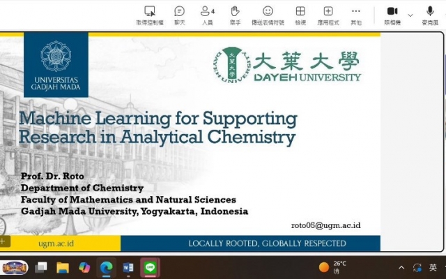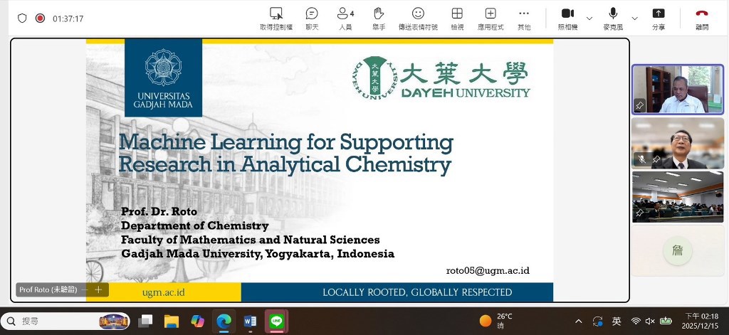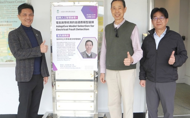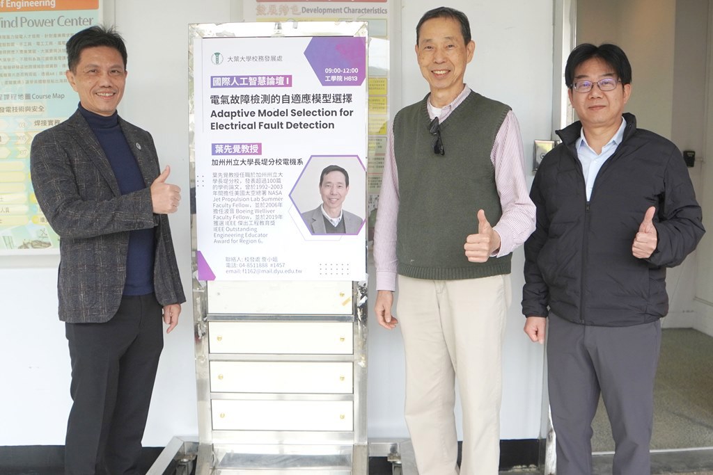 大葉大學校發處於12月15日舉辦「國際人工智慧論壇」,探討人工智慧於工程與科學研究領域的前沿應用,上午場邀請加州州立大學長堤分校電機系教授葉先覺主講「電氣故障檢測的自適應模型選擇」,下午由印尼日惹大學化學系教授Roto以線上視訊方式帶來「機器學習在分析化學研究中的應用」。